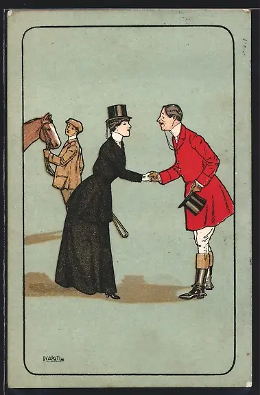 Künstler-AK sign.R. Caputi: Reiter begrüsst freundlich eine junge Dame