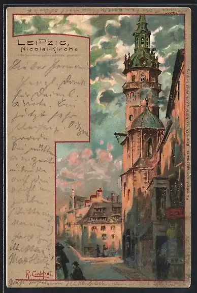 Künstler-AK sign.R. Carloforti: Leipzig, Nicolai-Kirche