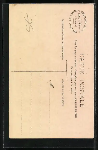Personenbezogene Daten auf der Rückseite der Karte wurden durch blauen Textmarker unkenntlich gemacht. Die blauen Stellen sind auf die Vorderseite durchgeweicht und wirken sich negativ auf das Postkartenfoto aus