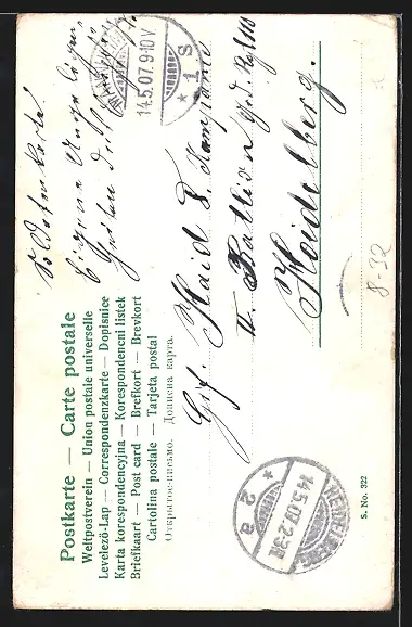 alte Ansichtskarte, gelaufen 1907, Abriebspur li. oben, guter Zustand