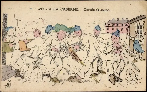 Künstler Ak A la Caserne, Corvée de soupe