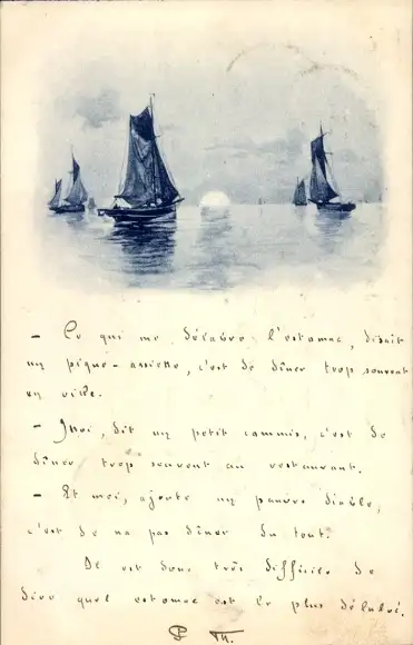 Künstler Ak Abendstimmung, Segelboote auf dem Wasser
