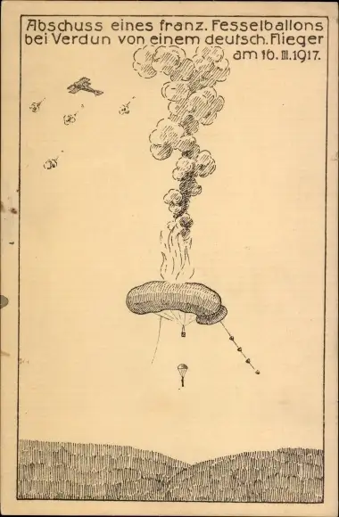 Künstler Ak Abschuss eines französischen Fesselballons bei Verdun, 16.03.1917