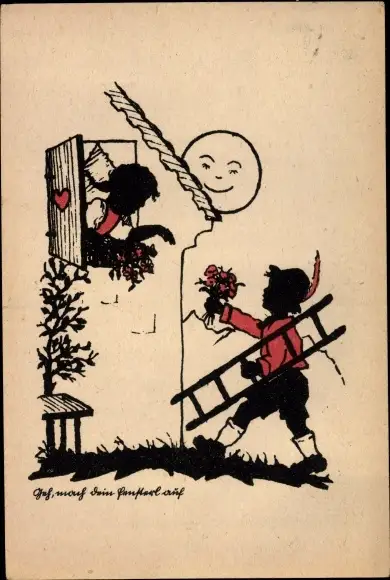 Künstler Ak Ach mach dein Fensterl auf, Liebespaar