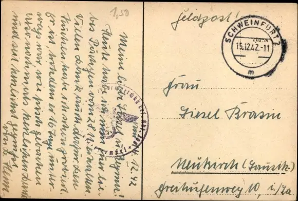 gelaufen als Feldpost 1942, sehr guter Zustand
