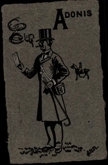 Künstler Ak Adonis, Gentleman mit Gehstock, Zylinder, Zigarette
