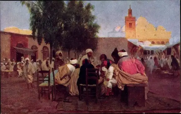 Künstler Ak Ägypten, Arabisches Café und Moschee