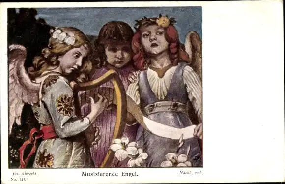 Künstler Ak Albrecht, Jos., Musizierende Engel, Harfe
