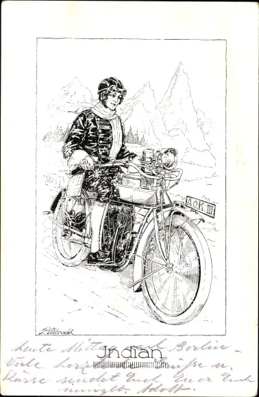 Künstler Ak Albrecht, P., Indian, Frau auf einem Motorrad