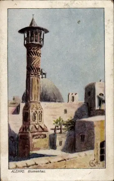 Künstler Ak Aleppo Syrien, Blumenhau, Turm