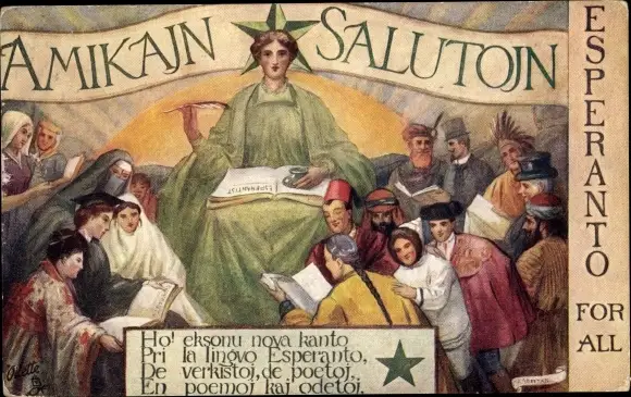 Künstler Ak Amikajn Saltojn, Friendly Salutations, Esperanto for all