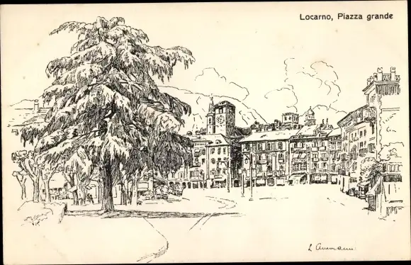 Künstler Ak Ammann, L., Locarno Kanton Tessin Schweiz, Piazza grande