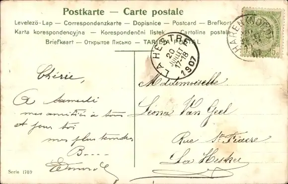 Zustand, siehe Scan, gelaufen, 1907 - ca 14 cm X 9 cm
