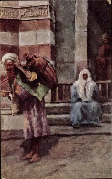 Künstler Ak Araber, Wasserträger, Wasserkrug, Maghreb