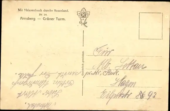 Künstler Ak Arnsberg im Sauerland Westfalen, Grüner Turm