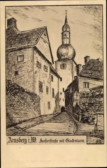 Künstler Ak Arnsberg im Sauerland Westfalen, Soesterstraße, Glockenturm