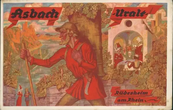 Künstler Ak Asbach Uralt, Reklame, Rüdesheim am Rhein