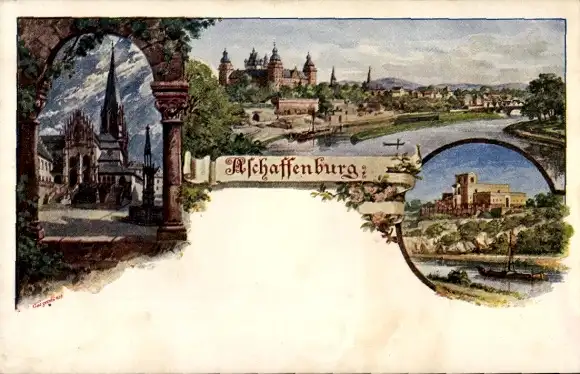 Künstler Ak Aschaffenburg in Unterfranken Bayern, Kirche, Gesamtansicht