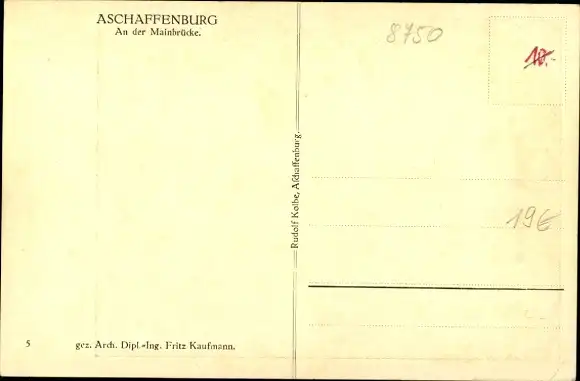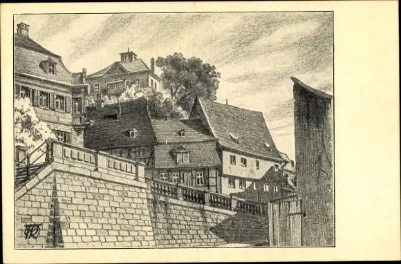 Künstler Ak Aschaffenburg in Unterfranken, Häuser an der Mainbrücke