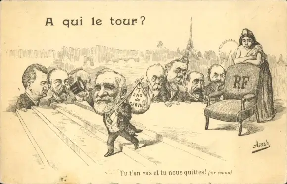 Künstler Ak Assius, Whose turn it is, Emile Loubet, Armand Fallieres