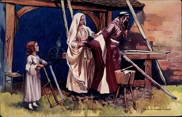 Künstler Ak Atelier de Nazareth, Schreinerwerkstatt, Heilige Familie