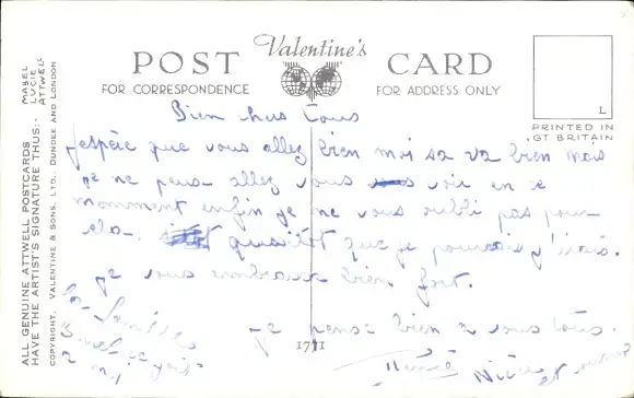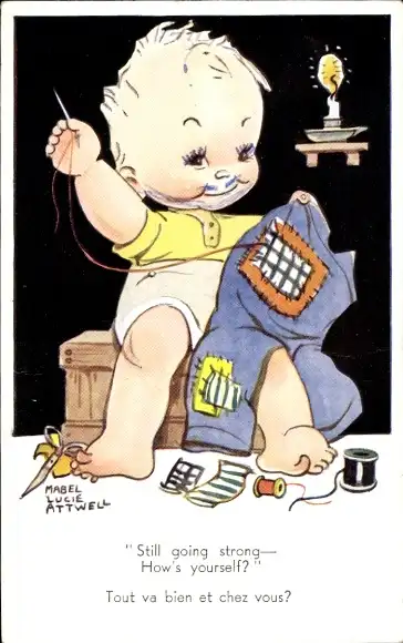 Künstler Ak Attwell, M. L., Kind beim Nähen, gemaltes Porträt
