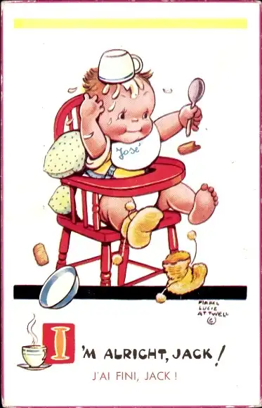 Künstler Ak Attwell, Mabel Lucie, Kleinkind im Hochstuhl
