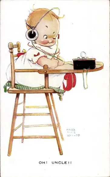 Künstler Ak Attwell, Mabel Lucy, Kleinkind mit Kopfhörern