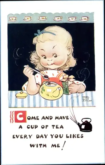 Künstler Ak Attwell, Mabel Lucy, Mädchen bereitet Tee zu