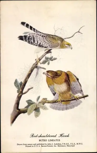 Künstler Ak Audubon, John J., Red shouldered Hawk, Buteo Lineatus, Rotschulderbussard
