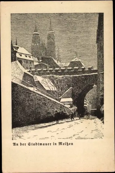 Künstler Ak Augustin, Meißen an der Elbe, An der Stadtmauer