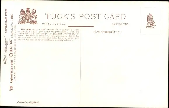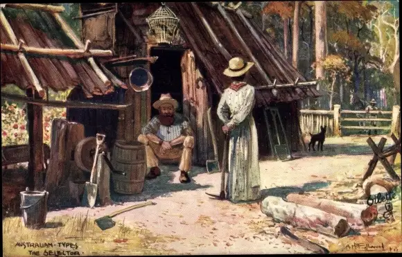 Künstler Ak Australian Types, The Selector, Schaufel, Holz, Axt