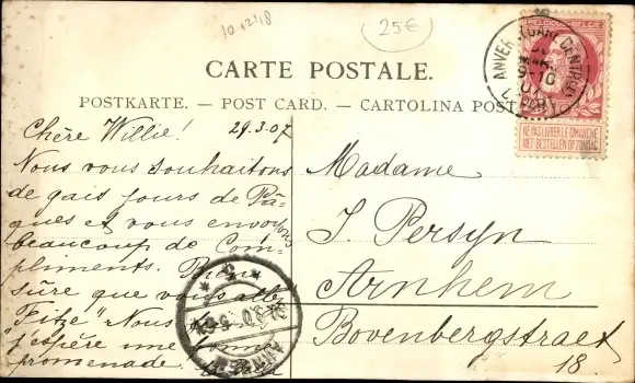 Zustand, siehe Scan, gelaufen, 1907 - ca 14 cm X 9 cm
