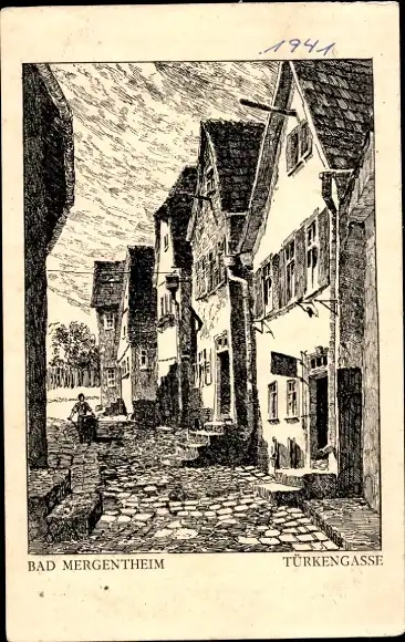 Künstler Ak Bad Mergentheim in Tauberfranken, Partie in der Türkengasse