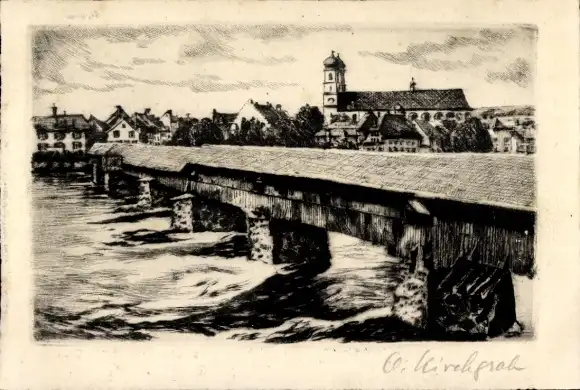 Künstler Ak Bad Säckingen, Rheinbrücke
