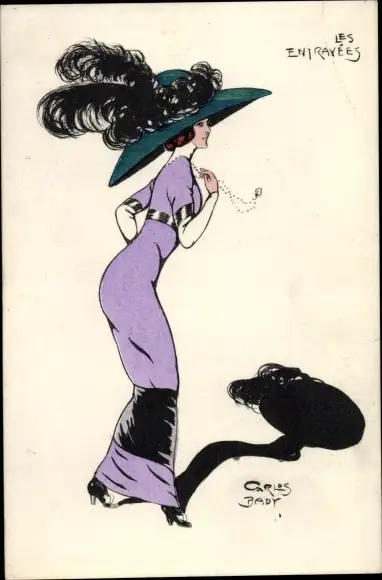 Künstler Ak Bady, C., Frau mit großem Federhut, Halskette, Les Entravees
