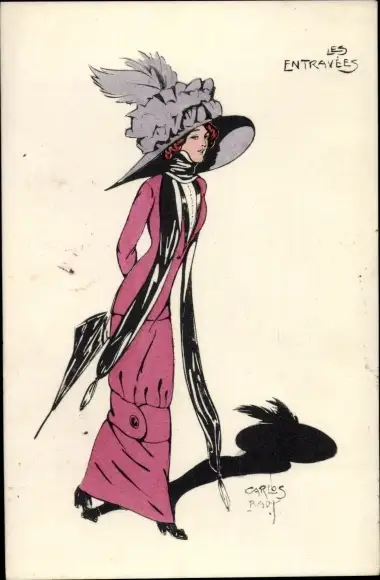 Künstler Ak Bady, C., Frau mit großem Federhut, Sonnenschirm, Les Entravees
