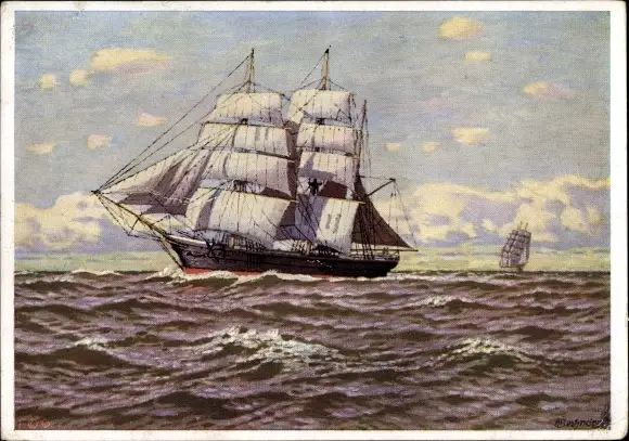 Künstler Ak Bahndorf, Heribert, Segelschiff, Dreimaster, Vollschiff