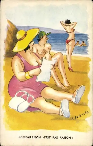 Künstler Ak Balanche, A., Strand, Humor, Comparaison n'est pas raison
