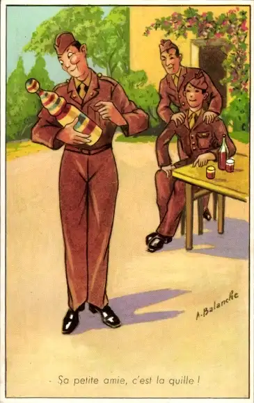 Künstler Ak Balanche, Soldat mit bemalter Flasche