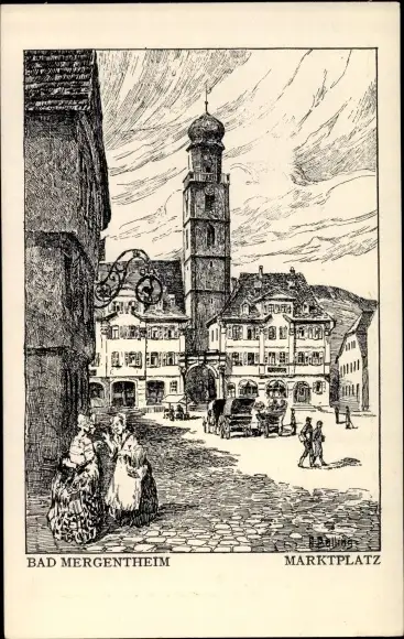 Künstler Ak Balling, R, Bad Mergentheim in Tauberfranken, Marktplatz