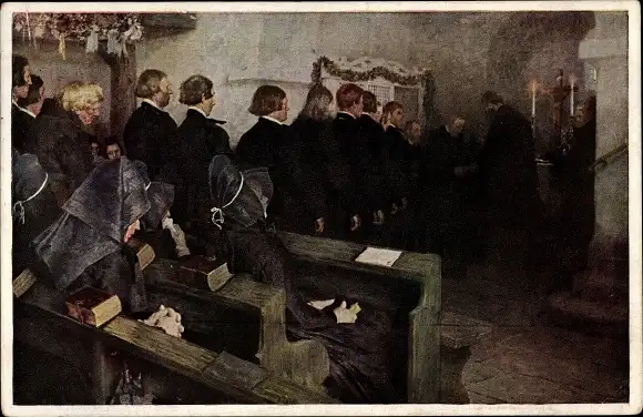 Künstler Ak Bantzer, C., Abendmahlsfeier, Hessische Trachten
