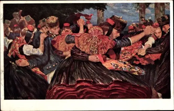Künstler Ak Bantzer, C., Hessischer Bauerntanz, Paare in Volkstrachten