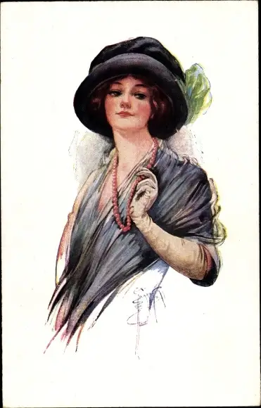 Künstler Ak Barber, Court, Dame mit Hut, Perlenkette, Portrait