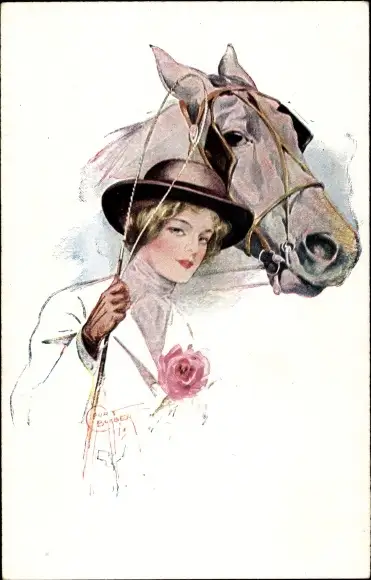 Künstler Ak Barber, Court, Driving Out, Pferd, Dame mit Peitsche