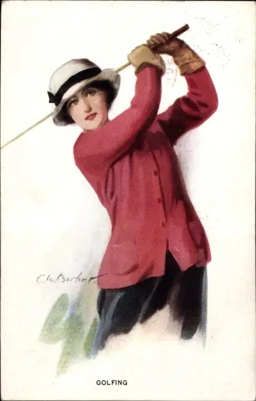 Künstler Ak Barber, Court, Frau mit Golfschläger