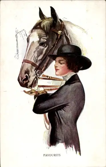 Künstler Ak Barber, Court, Junge Frau in Hut, Pferd, Reiterin