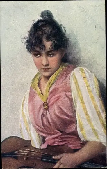 Künstler Ak Barthel, Zigeunerin mit Geige, Portrait