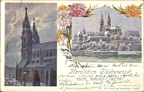 Künstler Ak Basel Bâle Stadt Schweiz, Stadt im Winter, Münster