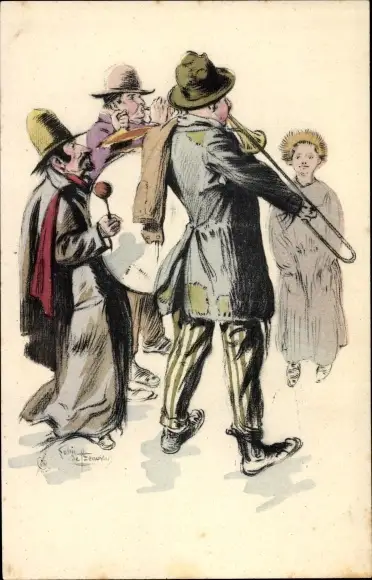Künstler Ak Beauvais, Straßenmusiker, Männer mit Musikinstrumenten